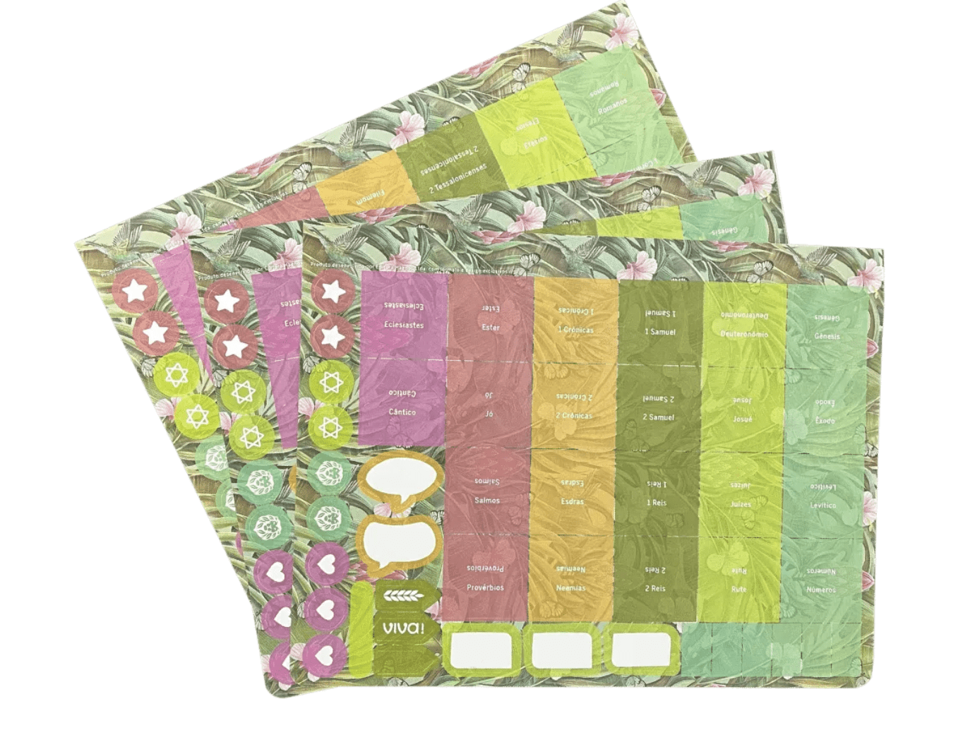 \nCaracterísticas e Benefícios das Abas Adesivas para Bíblias: \n \n1) Facilidade de Navegação: As abas adesivas são especialmente projetadas com tamanhos e cores estrategicamente selecionados, permitindo uma identificação rápida e intuitiva dos livros bíblicos. \n \n2) Durabilidade e Qualidade: Feitas com materiais de alta qualidade, nossas abas são resistentes e duráveis, garantindo que elas permaneçam firmes em sua Bíblia, mesmo com o uso constante. \n \n3)  Fácil Aplicação: para colar é muito fácil, as abas já são adesivas, vem com a marca onde você deve dobrar e colar, também conta com o nome dos livros da bíblia frente e verso, senso assim, facilita ainda mais a busca pelo livro desejado. \n \n4) Inspiradoras e Personalizadas: Acompanha 3 cartelas de abas adesivas completando os 66 livros da bíblia (de gênesis a apocalipse), e também em todas as cartelas contem adesivos extras para você colar onde quiser! \n \n5) Descole e cole: Cole em qualquer bíblia que desejar, Bíblia anote, bible Journaling, bíblia de estudo, bíblia da mulher, estas abas podem ser coladas em qualquer formato de bíblia. \n