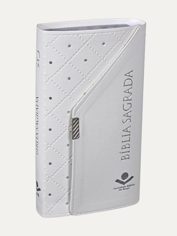 Em formato de carteira, com detalhes dourados, e botão de pressão, essa Bíblia veio resolver para as mulheres, aquele probleminha de espaço na bolsa. Agora você tem uma Bíblia completa, compacta e bonita. O acabamento em luxo dourado é mais um detalhe quando você abrir sua Bíblia. Vem com um marcador de páginas feito de fitilho de cetim na mesma cor da capa. E o tamanho da letra é ótimo para a leitura.
