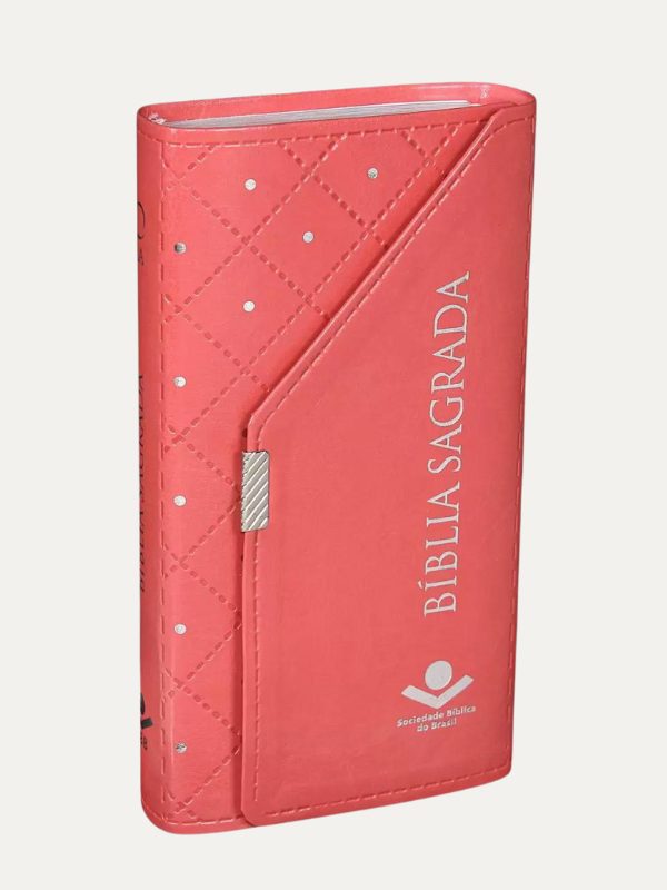 Em formato de carteira, com detalhes dourados, e botão de pressão, essa Bíblia veio resolver para as mulheres, aquele probleminha de espaço na bolsa. Agora você tem uma Bíblia completa, compacta e bonita. O acabamento em luxo dourado é mais um detalhe quando você abrir sua Bíblia. Vem com um marcador de páginas feito de fitilho de cetim na mesma cor da capa. E o tamanho da letra é ótimo para a leitura.