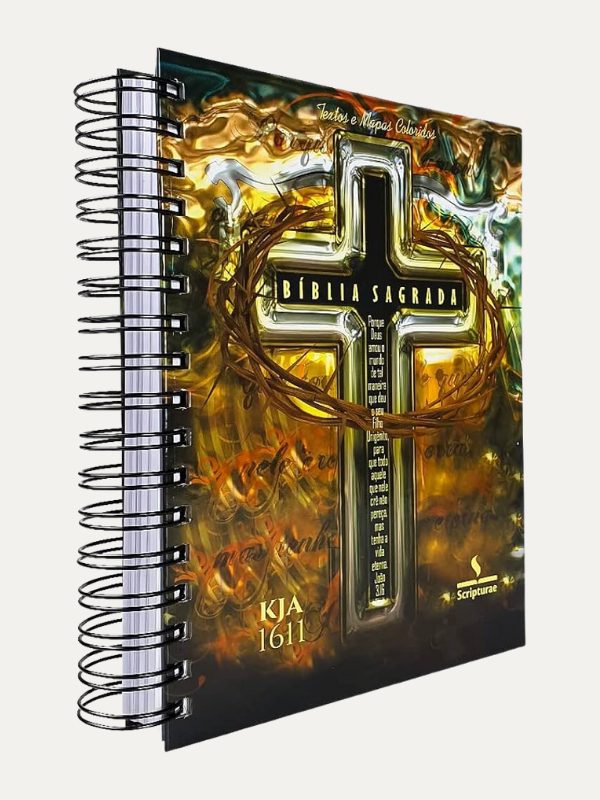 A "Bíblia King James KJA Anote" com capa espiral Textos e Mapas Coloridos e o design de Cruz é uma edição elaborada para proporcionar uma experiência de estudo bíblico rica e interativa. Esta Bíblia une a renomada tradução King James com um formato moderno e recursos visuais que enriquecem a compreensão e a prática das Escrituras.