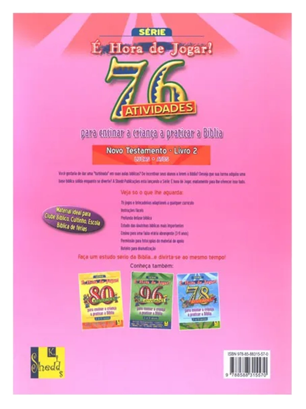 É HORA DE JOGAR, oferece exatamente isso. Pontos fortes: adaptáveis a qualquer currículo, instruções fáceis, profunda ênfase bíblica, estudo das doutrinas bíblicas mais importantes, ensino para uma faixa etária abrangente (3-11 anos), permissão de fotocópias do material de apoio.